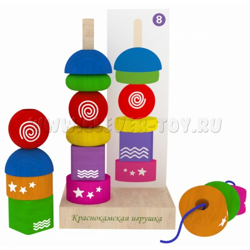 Все игровые детали выполнены из экологически чистого материала – дерева, аккуратно обработаны, окрашены безопасной краской, долговечны. Пирамидка произведена специально для малышей и полностью безопасна.