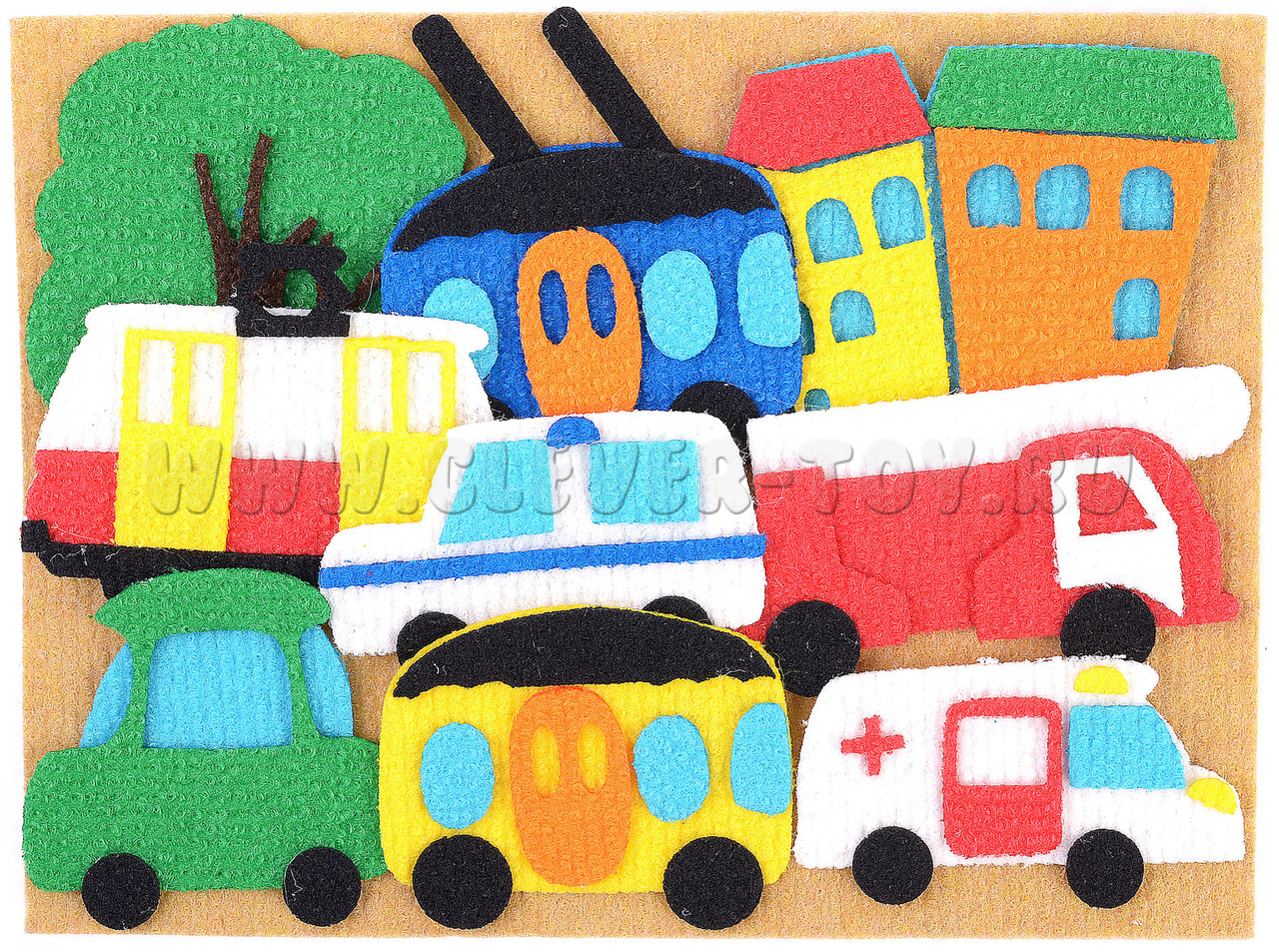 • 7 видов транспорта: автобус, троллейбус, скорая помощь, полиция, пожарная, автомобиль, трамвай;