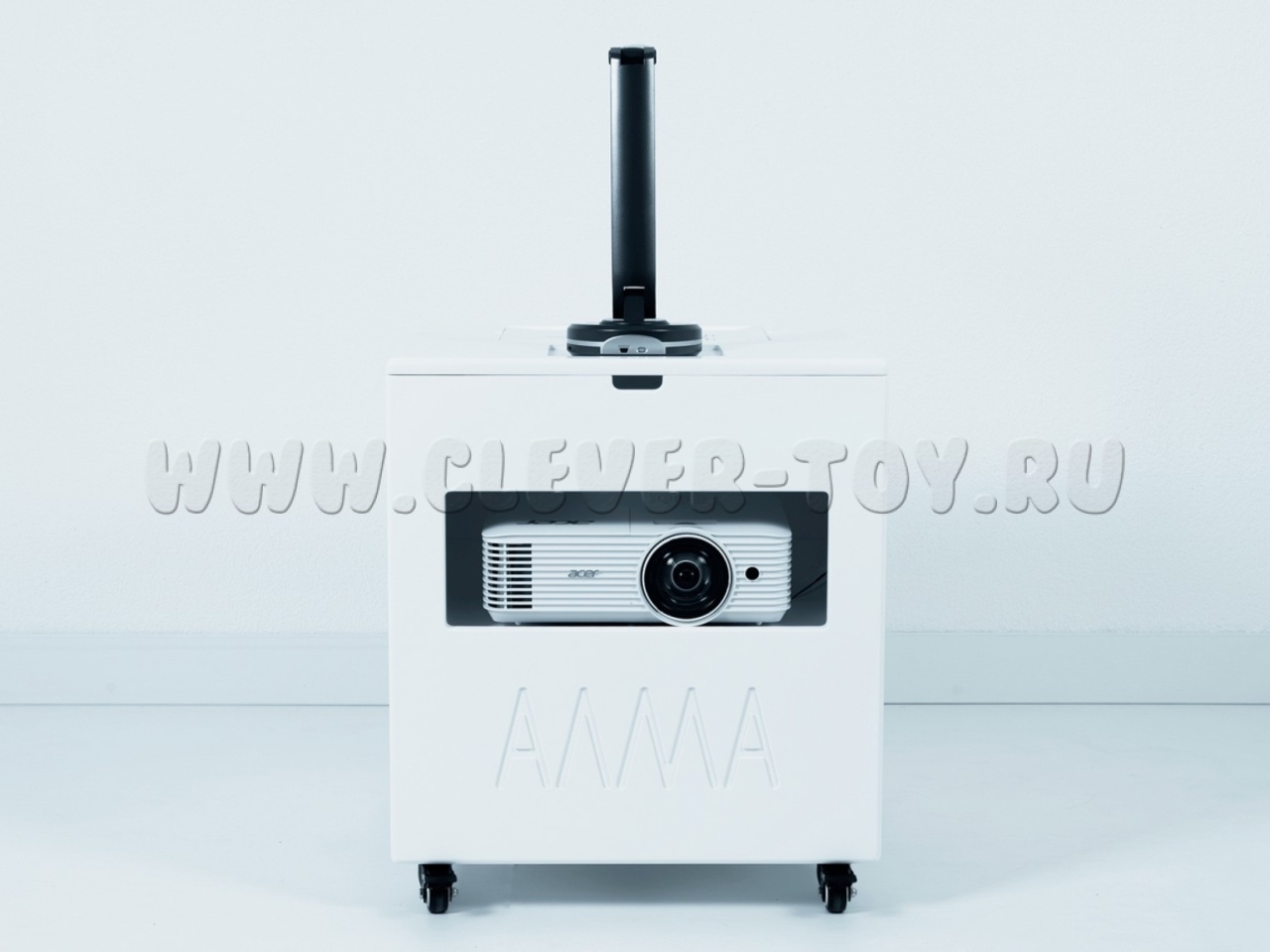 Благодаря подвижной платформе и компактным размерам "Творческую студию" легко перемещать между помещениями, а яркий проектор позволяет выводить изображение на различные поверхности.