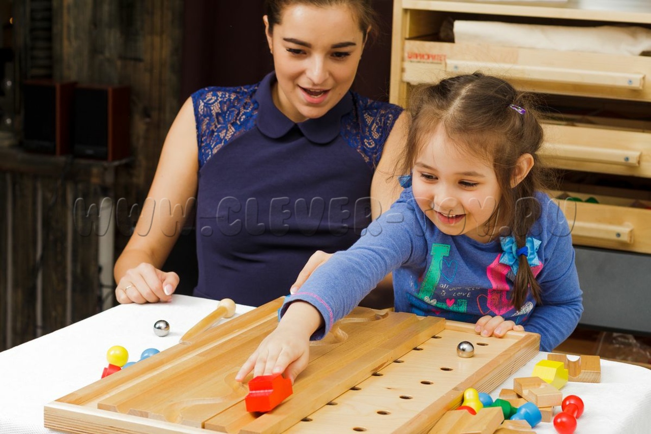 Более 1000 мелких деталей: резиночки, бусины, шнурочки, цилиндрики, набор для завинчивания, игральные кости. На доске с отверстиями ребёнок выкладывает узоры, соединяет элементы, повторяет заданный рисунок. Развивает мелкую моторику и хватательные движения.