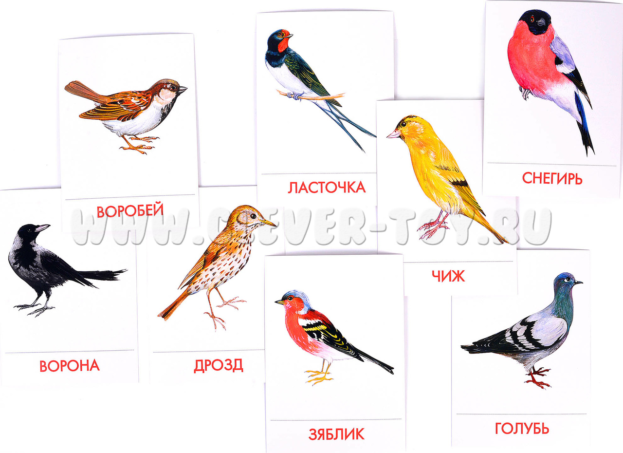 - Подробно опишите любую птицу, нарисованную на картинке, не называя её. Предложите ребёнку догадаться, о чем идет речь и подобрать соответствующую карточку. Затем поменяйтесь с ребёнком местами: он описывает, вы отгадываете.