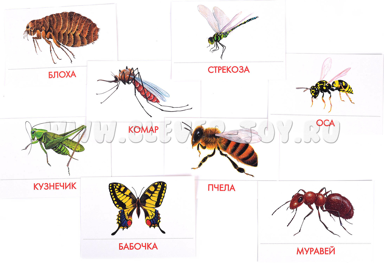 - Подробно опишите любое насекомое, нарисованное на картинке, не называя его. Предложите ребёнку догадаться, о чем идет речь и подобрать соответствующую карточку. Затем поменяйтесь с ребёнком местами: он описывает, вы отгадываете.