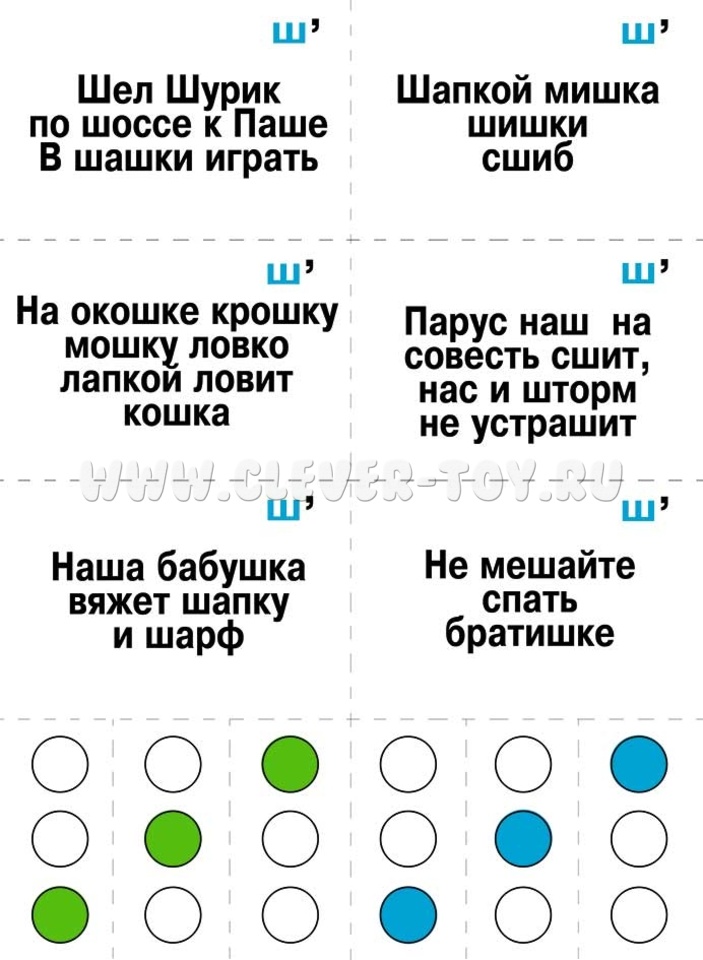 В комплекте удобная папка для хранения и 14 карт. Перед началом игры родителю или педагогу рекомендуется разрезать карты по пунктирным линиям. Получится 90 картинок, 30 стишков-скороговорок и 6 схем.