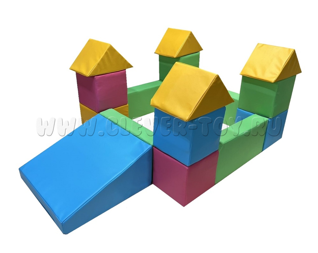 Комплектация: куб – 24х24х24 – 8 шт. горка – 50х50х24 – 1 шт. брус – 50х24х10 – 4 шт. треугольник – 34х24 -4шт.