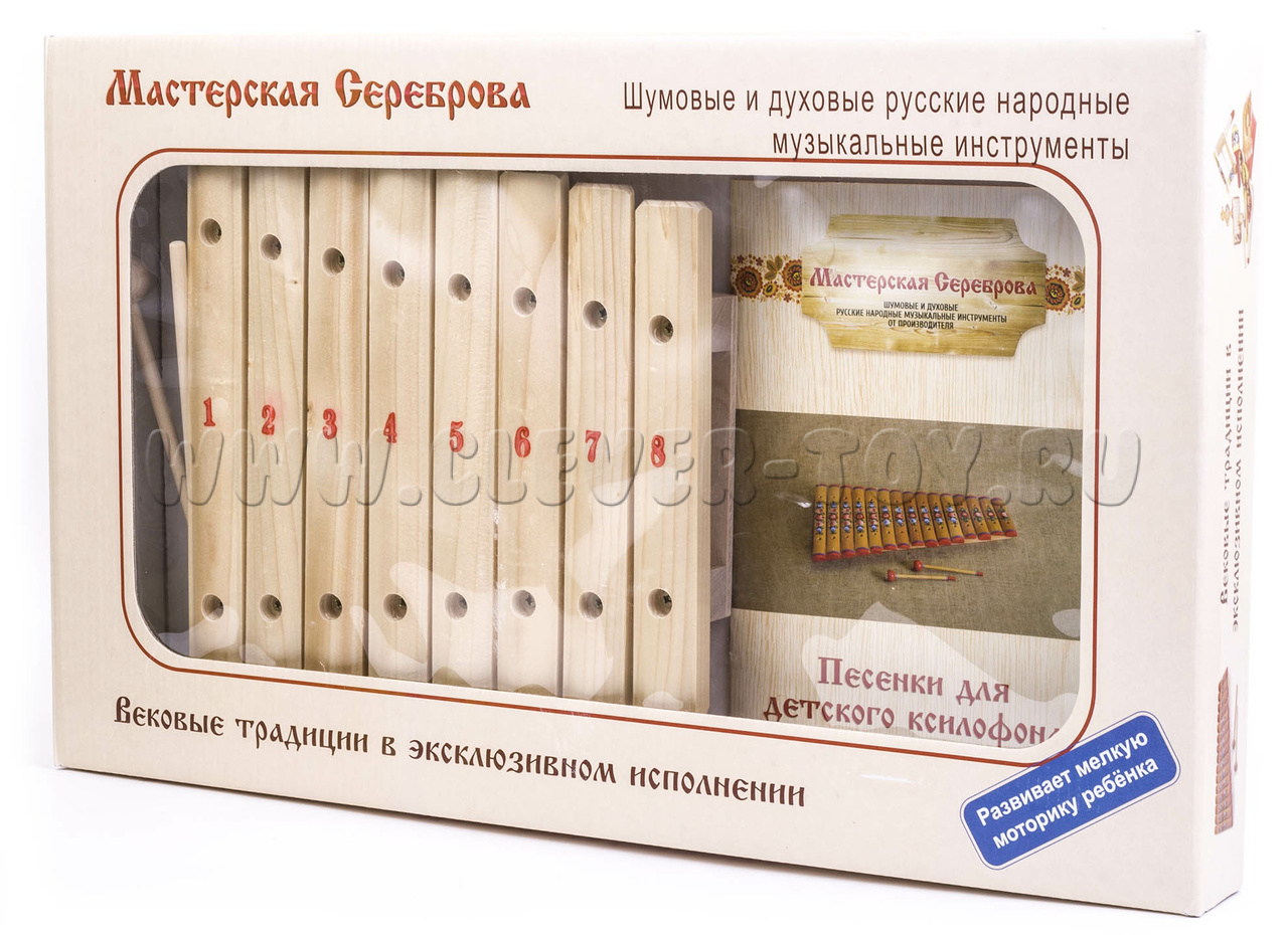 Ксилофон - древний музыкальный инструмент. Он был особенно популярен в Африке, Южной Америке и Азии и имел различное строение, местами даже очень сложное. В Европе и России он прибрел популярность с опозданием. Наш ксилофон сделан из ели и состоит из 8 пластин, обладает не большим размером, и идеально подойдет для начинающих музыкантов. Несмотря на то, что ксилофон не красочный, он обладает интересным, звучанием и без труда сможет привлечь внимание ребенка. Детям будет интересно разучивать любимые мелодии из советских мультфильмов или сказок, ведь на нем очень просто обучаться. Многие думают, что когда ребенок учится играть на каком-то музыкальном инструменте, то он развивает только один определенный навык, но на самом деле, музыкальные инструменты служат разностороннему развитию навыков и умений.