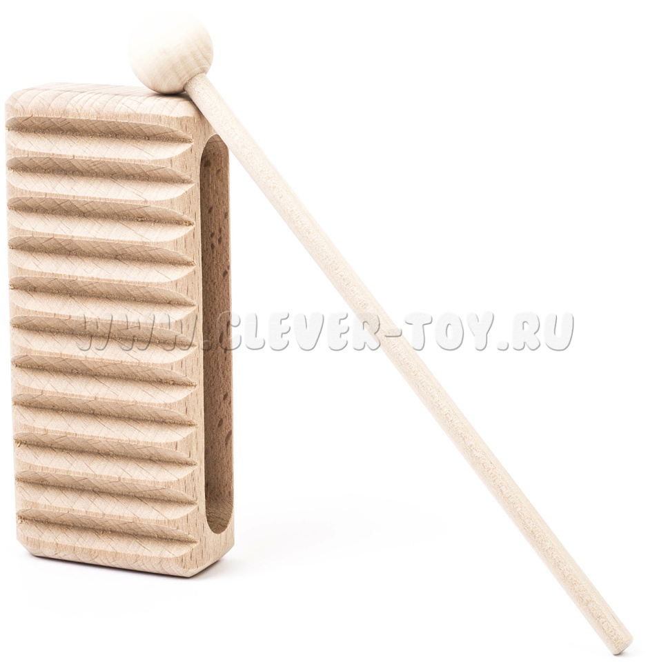 Представляет собой деревянный брус 30х60х100 мм. Музыкальный инструмент комплектуется ударной палочкой. Материал: бук.