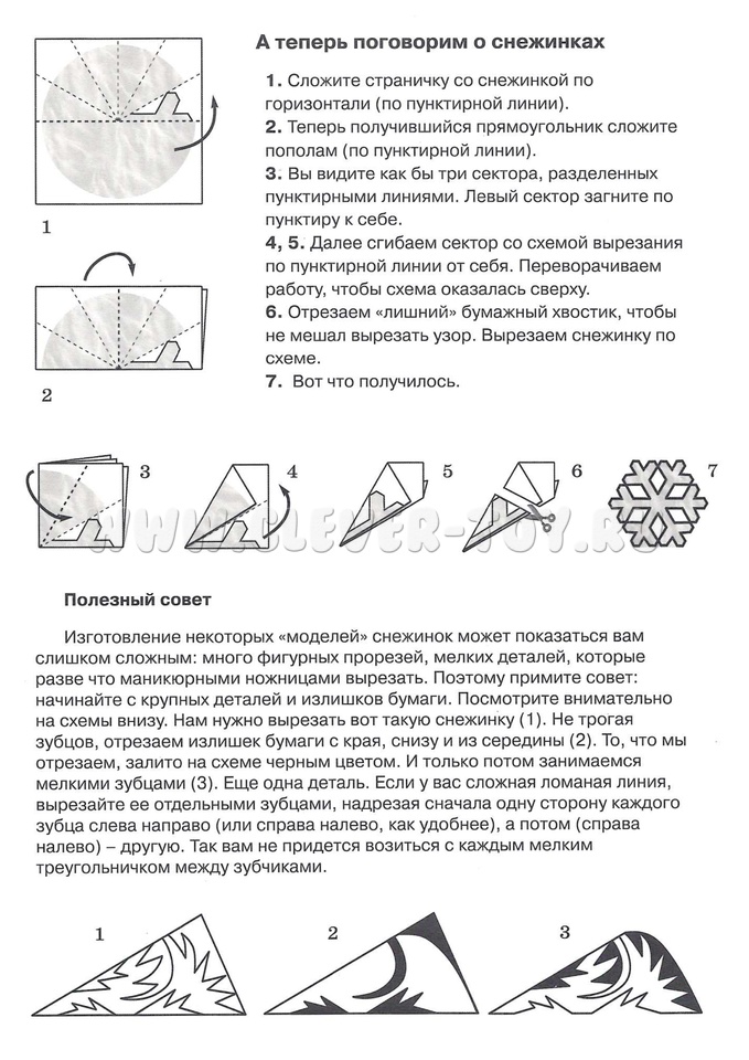 Снежинки, которые вы вырежете из нашей книжки, не растают в вашей теплой квартире, а, наоборот, добавят уюта и новогоднего волшебства. Классическая технология, доступная детям! И главное - научившись способу вырезания снежинок, можно сделать их сколько хочешь, удивляя друзей и близких. Приучайте детей фантазировать, работать руками и создавать красоту!